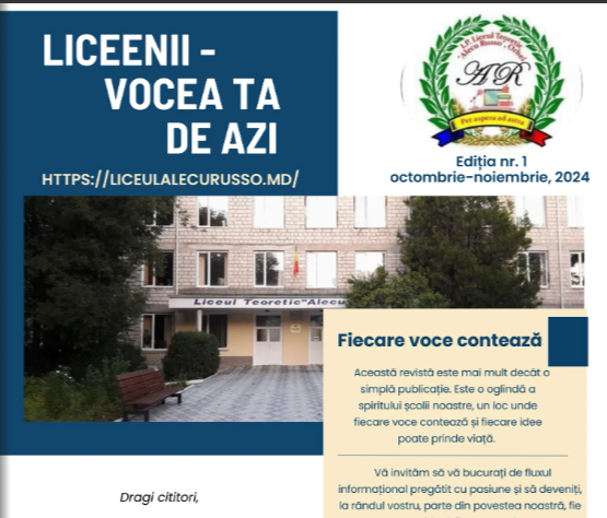 Bine ați venit în paginile revistei școlare, un spațiu dedicat Creativității, Ideilor și Pasiunilor noastre comune!!!